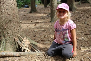 Ráno byly nejmenší holčičky, které se doslechly od Verunky o hodných skřítcích, v lese postavit domečky. Domečky byly velké, malé, vysoké, nízké, ale především krásné. A tak když pak holčičky odešly, přišli skřítkové a za tak nádherné domečky jim poděkovali a nechali jim spoustu sladké odměny. Po odpoledním klidu se stavitelky vrátily k domečkům a sladké odměny si vyzvedly.